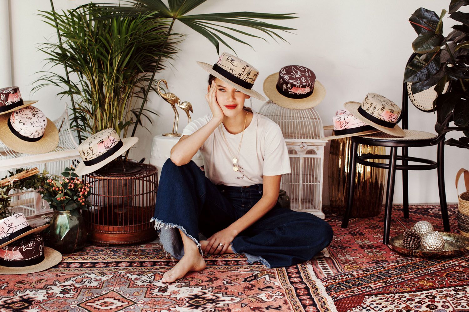 Sombrero pintado y confeccionado a mano en colaboración con Eloisa. ( Color Vinotinto )