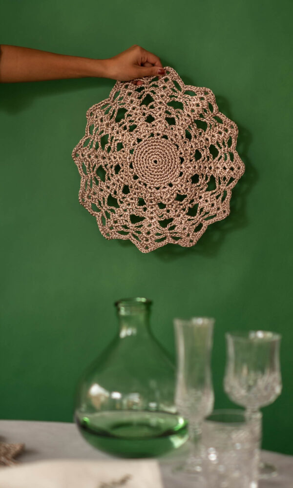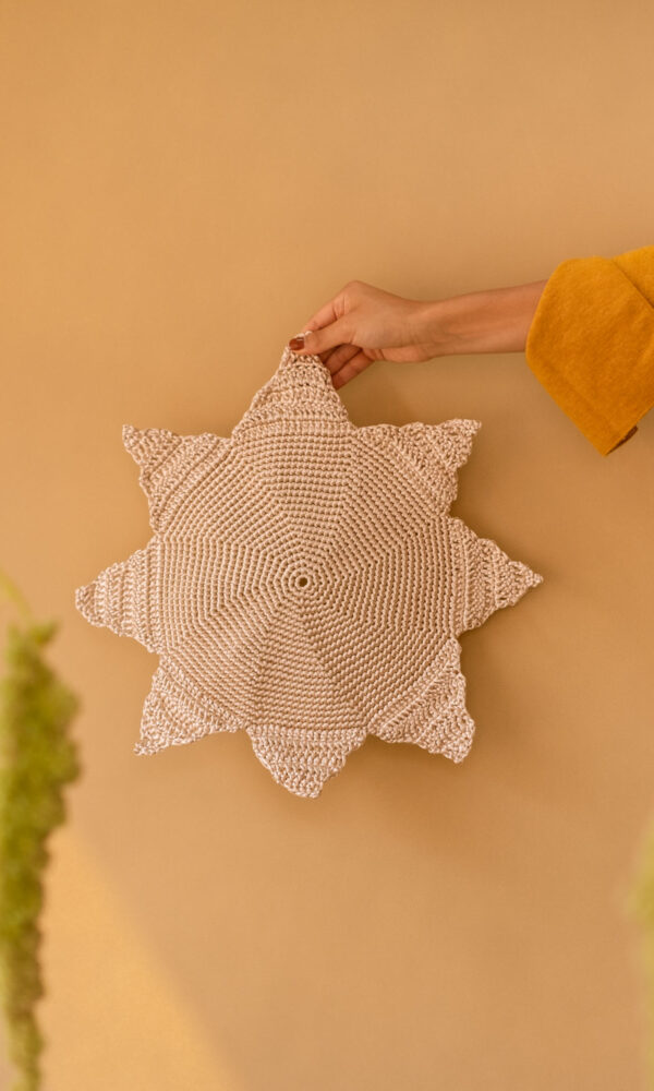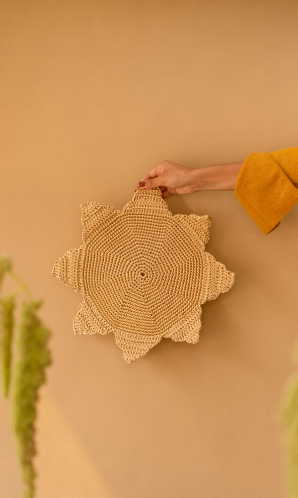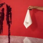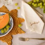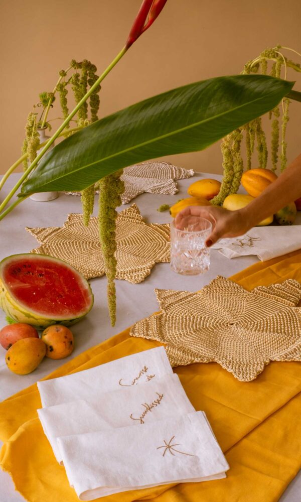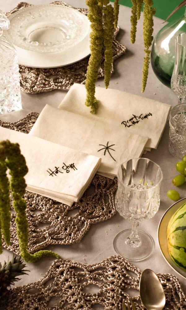 Set de (6) servilletas “Thatlatingal x Ura” bordadas a mano en lino natural, color nude.
