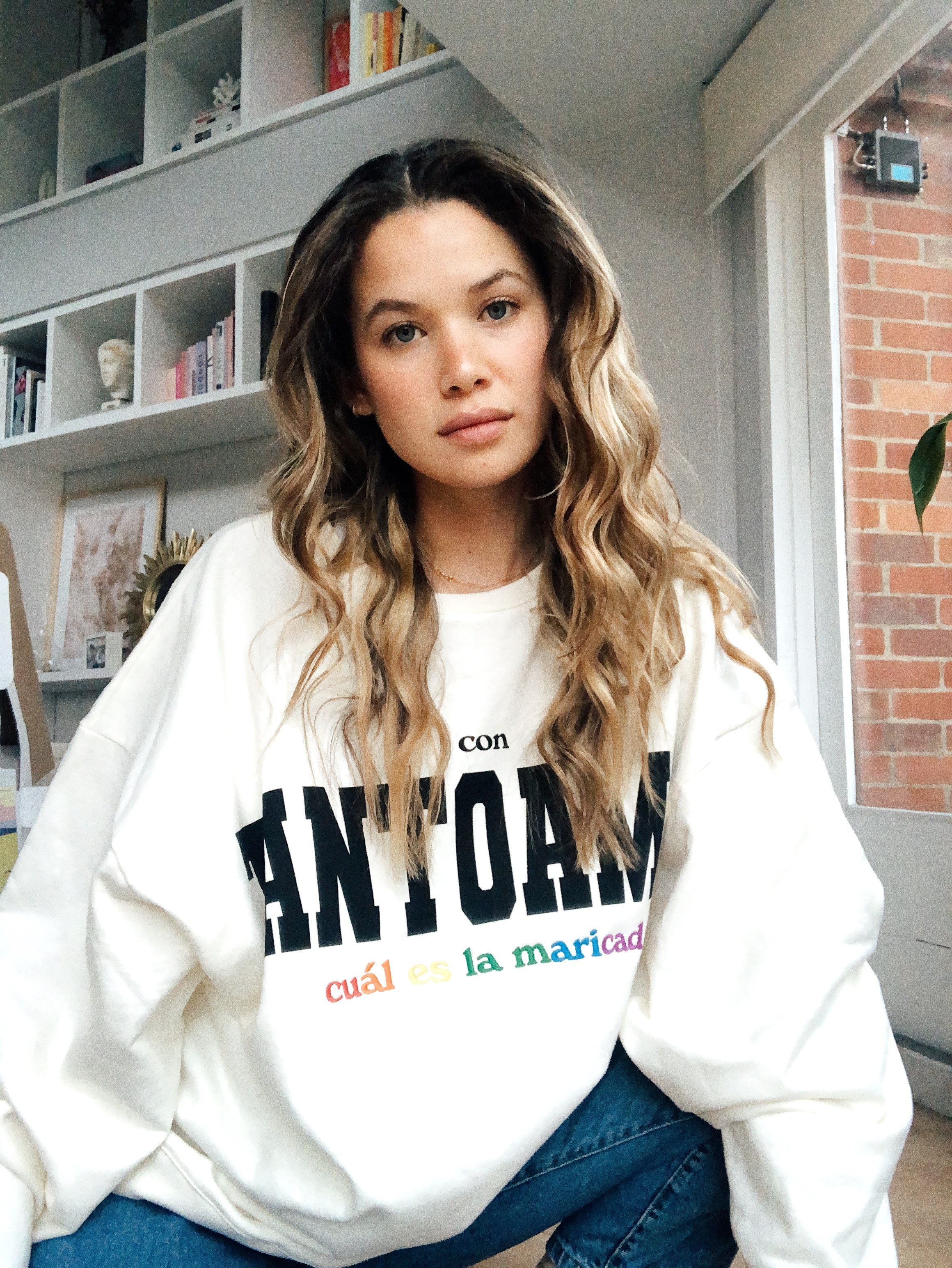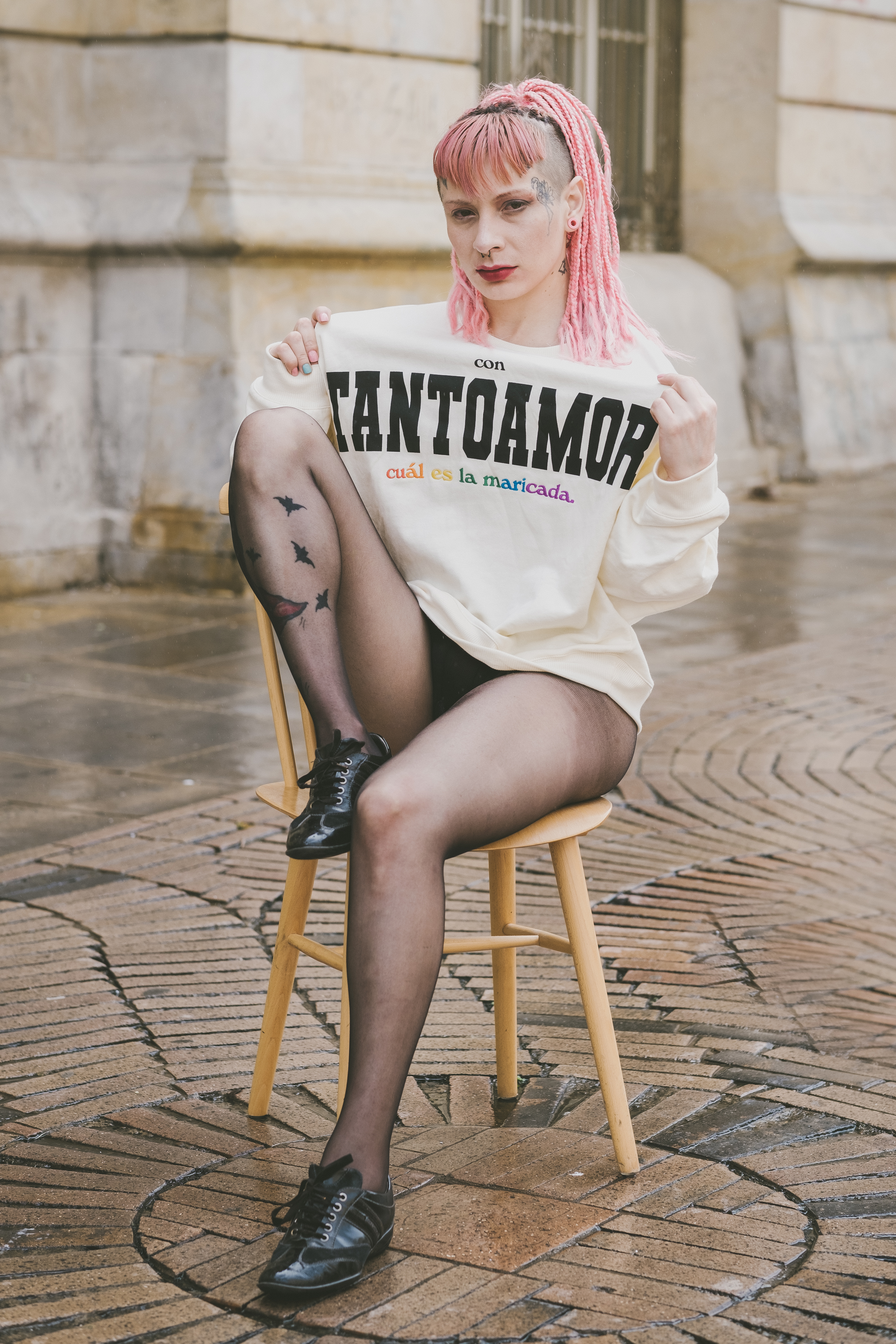 Saco cuello redondo oversized clásico, estampado y bordado en algodón 100%, hecho con amor en colombia. EL 50% del valor de este producto será donado a 2 organizaciones en busca de apoyar y aportar a la lucha de nuestros hermanxs por sus derechos.