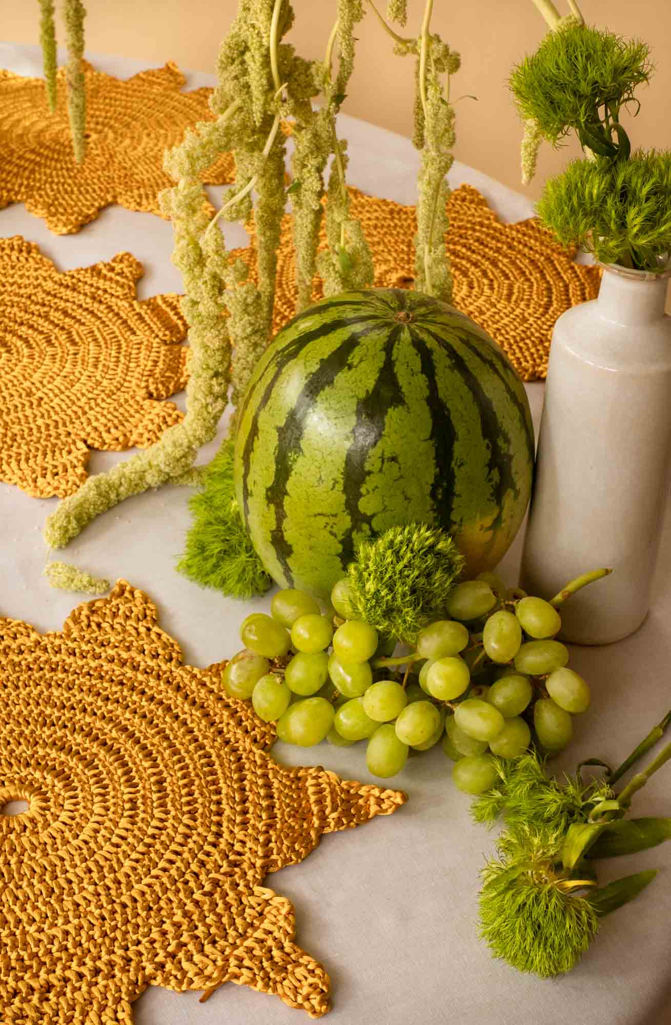 Set de (6) individuales tejidos a mano con alma local y porta vasos compañeros.